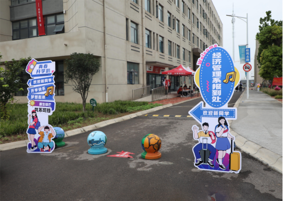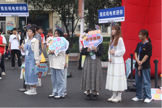 亲切的欢迎标语、特色鲜明的合影立牌,校园里处处洋溢着喜悦的氛围。