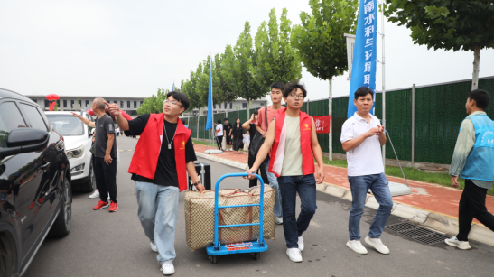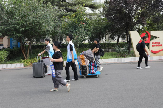 从地铁口、公交站到学校宿舍,处处是志愿者的忙碌的身影。一句句“欢迎来到水环学院”,他们主动帮助新生搬运行李,充分展现了水环人的热情与风采。