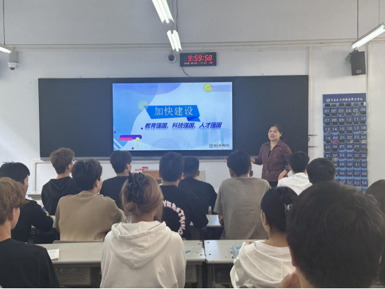 10月26日,校长李志萍走进思政课堂,以“加快建设教育强国、科技强国、人才强国”为题,为信息工程系22建电-智设1班学生讲授思政课。
