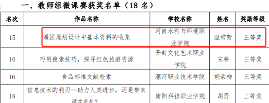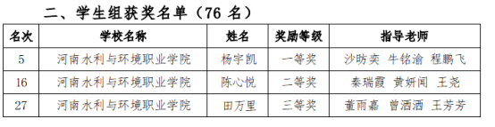 近日,2023年河南省高职高专院校信息素养大赛省赛圆满落幕。ylzzcom永利总站线路检测水利工程系教师温雪营获得教师组三等奖,信息工程系杨宇凯、陈心悦和土木工程系田万里3名同学分别获得学生组一等奖、二等奖和三等奖,学校获得教师组和学生组“最佳组织奖”。
