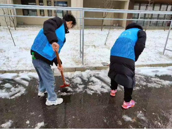 扫雪除冰活动既是应对冰雪天气的有效举措,也是ylzzcom永利总站线路检测师生参与劳动、热心奉献的重要时机。在扫雪除冰过程中,拿着铁锹扫把、穿着红黄蓝马甲的志愿者和老师们成为雪地里一道靓丽的风景线。大家顶着寒风以最快的速度将积雪清理干净,一条条堆满厚厚积雪的道路变身为方便行走的“安全通道”。
