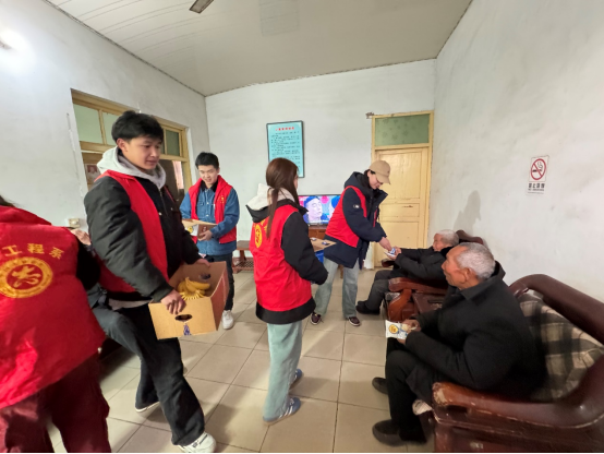 “关爱空巢老人”活动中,志愿者身穿红马甲,为老人们送去牛奶、面包和水果等物品,帮助他们整理房间、打扫卫生、清洗衣物,聊天分享大学生活中的趣事,现场演示常用家电的正确使用方法,为老人们送去了欢乐和温暖。