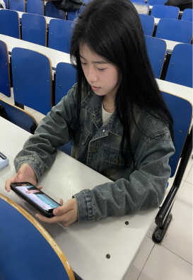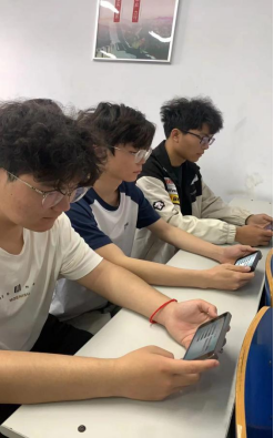 在教室里通过手机观看直播