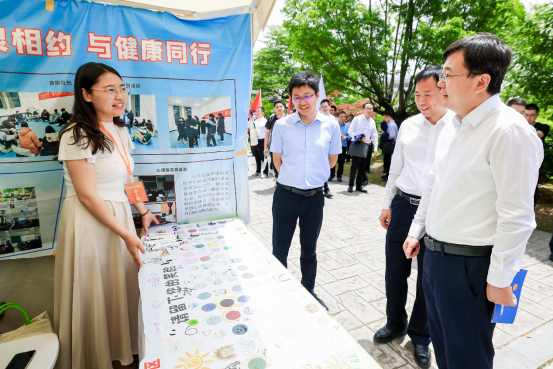 4名师生代表参加了12355爱‘心’百校行启动仪式暨首场活动,并在“心理集市”高校心理健康活动成果展台前展出了学校心理健康教育工作成效。学校展位吸引到各个高校老师与学生驻足观看,并在笑脸打卡处纷纷绘制出独具特色的微笑,传递心中的温暖。