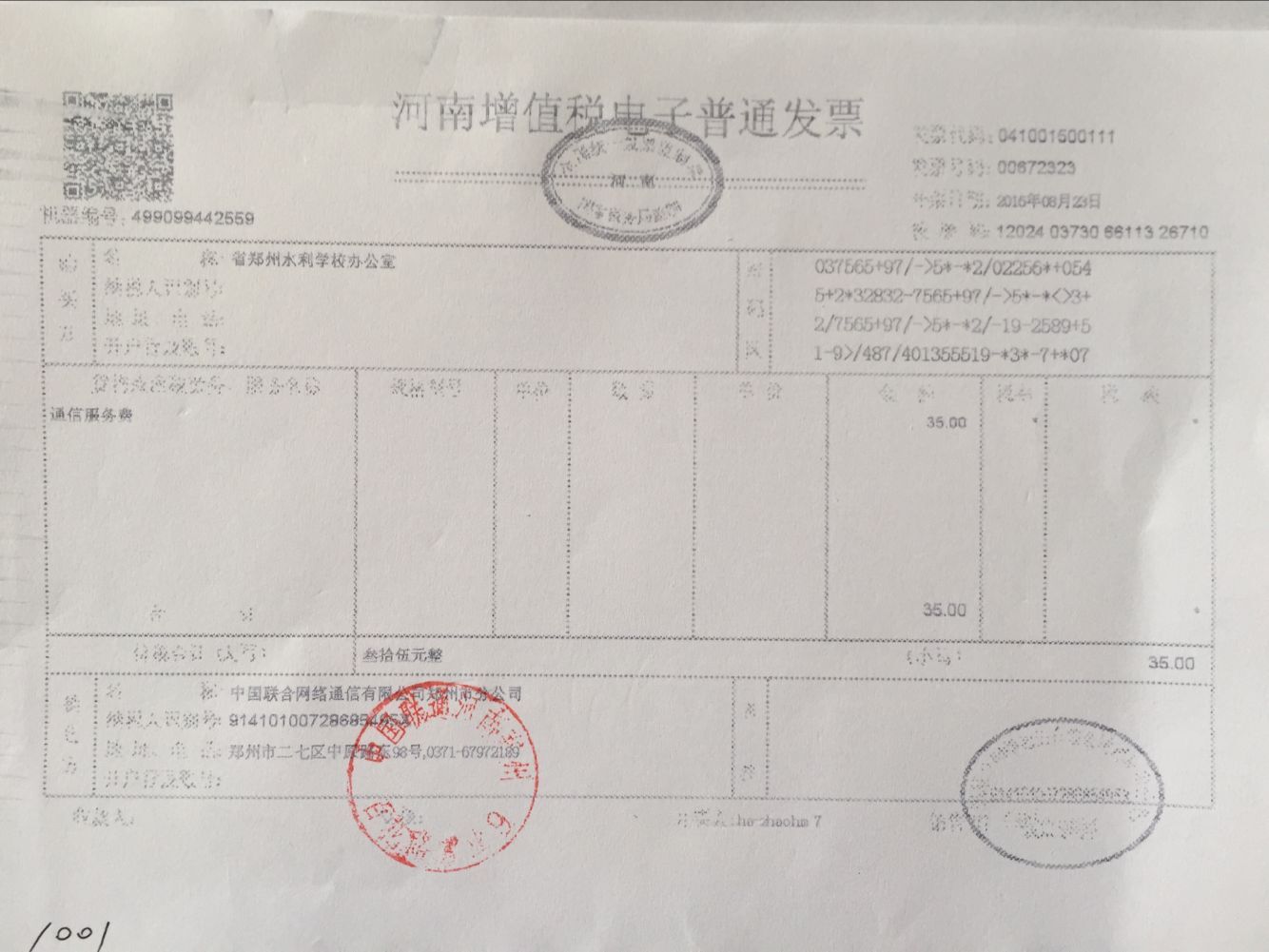 由于联通公司根据国家税务局的相关规定由机打发票改为电子发票,ylzzcom永利总站线路检测各部门在交费出票后必须加盖营业厅印章。