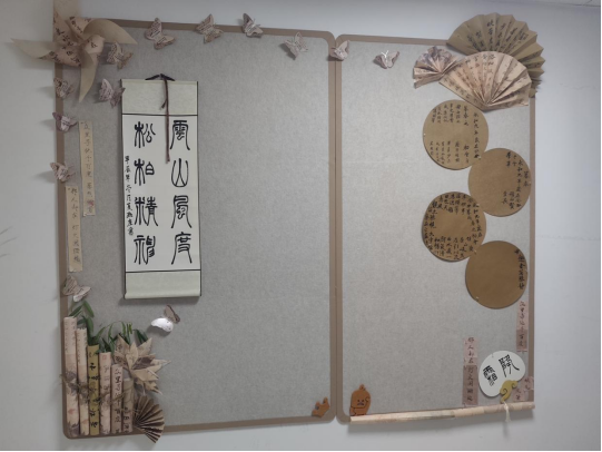 同学们挥毫泼墨,用心书写每一个汉字,横竖有情,撇捺传意。一幅幅整洁美观的书法作品呈现在大家眼前,或笔锋出众、或疏密有致、或排列得当、或运笔稳健,充分展现了同学们扎实的书法功底。这些精心创作的书法作品被张贴在文化墙上,形成一道亮丽的风景线,吸引众多师生驻足欣赏。