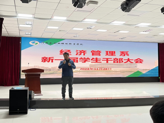 11月28日,经济管理系在德礼讲堂召开新一届学生干部大会,系党总支书记钟含及相关负责人、教师,新一届学生干部参会。