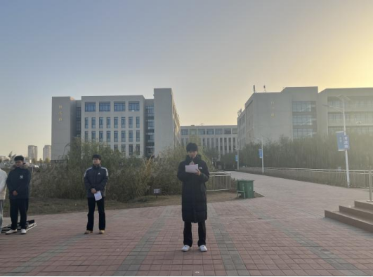 11月27日,水利工程系举行升旗仪式,系辅导员和在校学生参加。