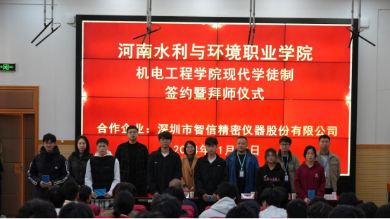 2024年11月22日,机电工程系在北教三阶举行了智信现代学徒制签约暨拜师仪式。机电工程系党总支书记王建军,系主任王利卿、副主任李戈,深圳市智信精密仪器股份有限公司市场业务中心华北区市场总监谢文鹏,企业导师和系师生代表参加。仪式由李戈主持。