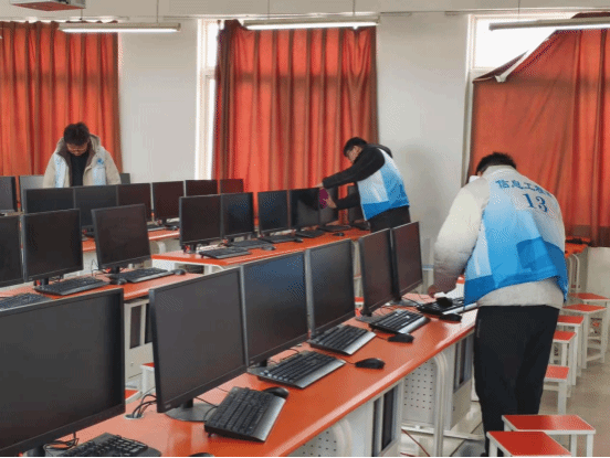 活动分为“净护机房,志愿同行”“践雷锋精神,护校园新绿”“情系雷锋月,爱暖三月天”“爱心助力专升本,志愿服务伴梦行”“共筑网络安全,坚守网络防线”五部分。在“净护机房,志愿同行”打扫机房活动中,志愿者们整理讲台、擦拭设备,分工明确、配合默契,对学校机房进行了全面清洁,充分展现了热爱劳动、为人民服务的精神风貌,为师生营造了整洁的学习环境。