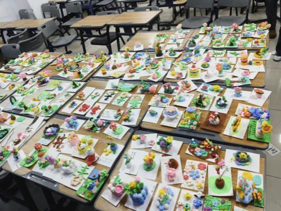 活动现场配备专业工具包,邀请专业人士讲解非遗文化的由来并演示泥塑传统技法。在创作环节,学生们运用传统技艺,制作出憨态可掬的动物、创意花器等作品。同学们纷纷表示,活动极大的缓解了学习生活压力。