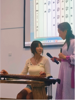 活动伊始,张欢欢以《好玩的古琴》为题展开分享。通过解析《沧海一声笑》等经典曲目的艺术意境,阐释了古琴"清微淡远"的审美特征与现代心理学中正念疗法、情绪调节技术的理论关联。她指出,古琴音乐通过其独特的音律,能够有效引导听者专注当下,这正体现了中国传统'乐教'思想的核心理论。