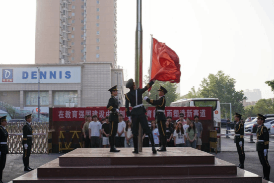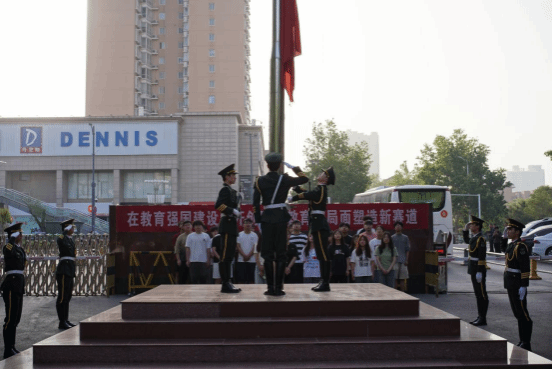 在庄严的氛围中,伴随着雄壮的《义勇军进行曲》,五星红旗冉冉升起。全体师生肃立行礼,高唱国歌,展现了新时代青年的精神风貌。