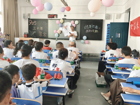 活动伊始,校友们参观校园,感叹母校在校园建设、教学条件等方面的显著变化。班主任钱东霞老师到场参加活动,与校友们一同翻看老照片,现场氛围温馨热烈。座谈会上,校友张金莉代表班级向钱老师送上鲜花,表达感恩之情。随后,校友们分享个人经历,他们中既有会计师,也有成功创业者,在各自领域发光发热。