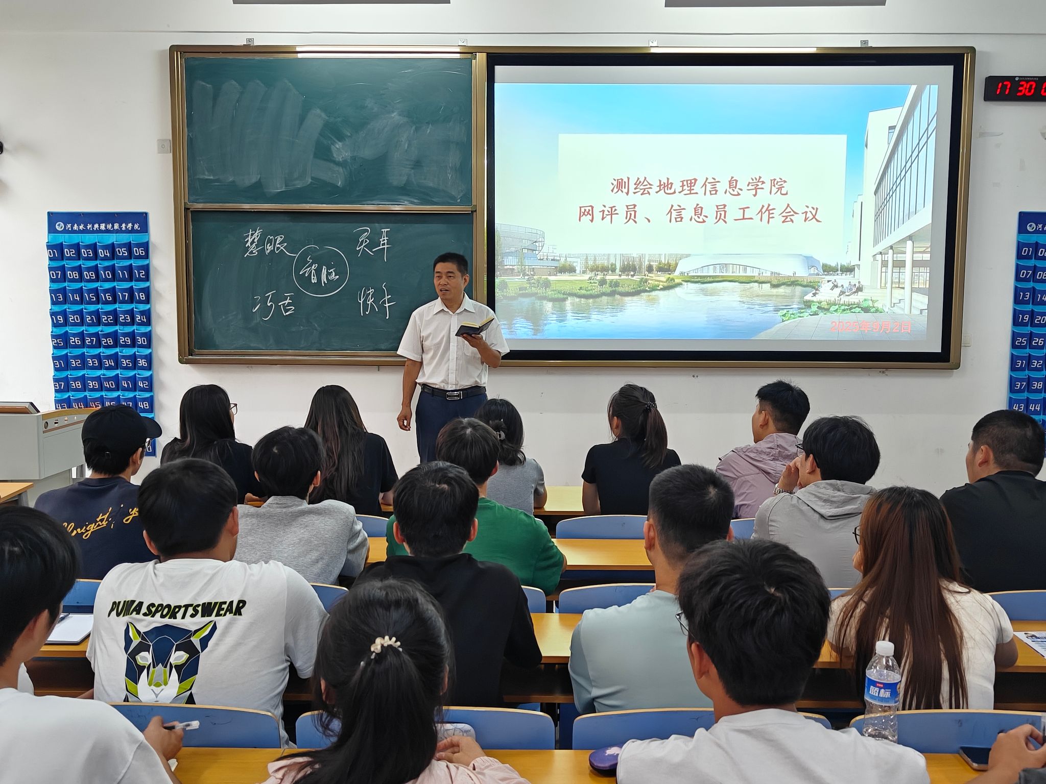 为进一步推动网评员、信息员与学生干部履职尽责,9月2日,测绘地理信息学院召开学生干部大会暨网评员专项工作会议。会议由学院党总支书记钟含主持,全体学生干部、网评员和信息员参会。