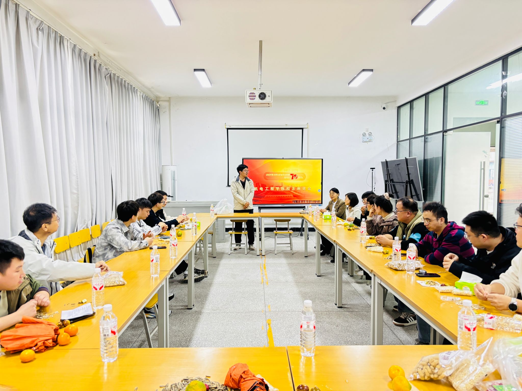会上,主持人逐一介绍参会领导与校友代表,并指出本次座谈会的背景与目的——既是为庆祝母校70周年华诞搭建校友重逢的“叙旧平台”,更是为学院人才培养、学科发展汇聚智慧的“赋能桥梁”。
