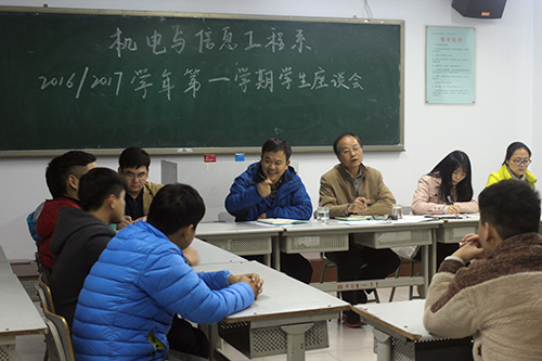 2016年11月9日、10日晚上,机电与信息工程系召开了本学期学生座谈会,系党支部书记武凤翔、副主任岳学超、教管和学管老师以及2016级辅导员参加会议。