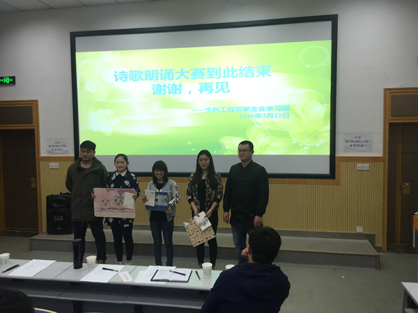 为了进一步充实同学们的课余生活,给学生创造一个展现自我的舞台,3月22日下午,水利工程系在北教一阶教室举办了“飞扬的青春行”诗歌朗诵比赛,系党支部书记李文林、副主任王建军出席此次活动。