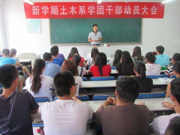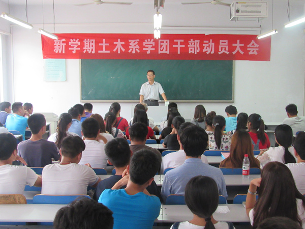 2015年9月7日下午5:00,土木工程系在南教404教室召开新学期学团干部动员大会系党支部书记文琳、副主任钟含,全体学管老师学团干部和各班班长参加会议