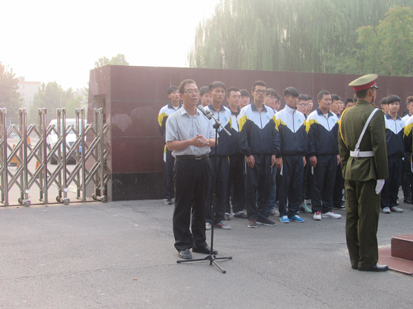 仪式上,国旗护卫队员们迈着整齐的步伐,护送国旗入场。伴随着庄严嘹亮的国歌,五星红旗冉冉升起,全体师生怀着崇敬与喜悦的心情,凝视着迎风飘扬的五星红旗。141023班同学兰乾坤发表主题为“铭记历史,勿忘国耻”的演讲。系党支部书记文琳在讲话中介绍了有关中国历史的重大事件,要求同学们学习历史,了解历史,奋发图强,报效祖国。