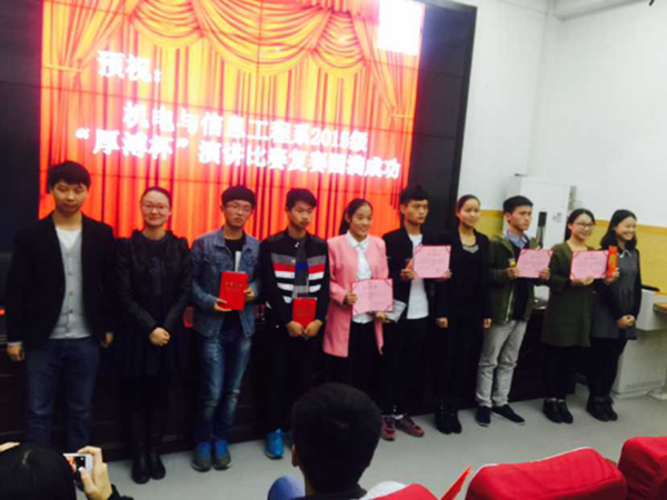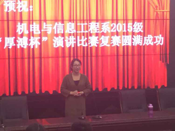 由机电与信息工程系主办的2015年“厚溥杯”演讲比赛经过初赛已进入复赛,复赛于10月30日晚在北教学楼三楼录播室进行。本次演讲比赛的主题是“互联网+时代,如何学好专业”,机电与信息工程系15级计算机应用技术教学综合改革示范专业学生参加了演讲比赛,经过初赛选拔,16位学生代表各自班级进入了复赛的角逐。比赛评委由钱冬霞、齐凤琴、邢培振、钱欢、王苑璐五位老师组成。