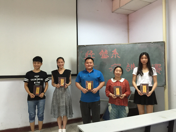 为全面深入学习习近平总书记系列重要讲话精神,经济管理系于2015年5月19日举办了“学习习近平总书记系列重要讲话”演讲比赛。比赛中选手们围绕习近平总书记的讲话,结合自身对“四个全面”的重要意义、辩证关系和精神实质的理解,从不同的切入点悟道理、谈体会,用精彩的演讲征服了在场观众和评委。此次比赛进一步增强了同学们的思想交流,提高了同学们的综合素质,促使同学们深刻认识到了习近平总书记系列讲话的重大意义。经过精彩的比拼,比赛最终评出一等奖1名、二等奖2名、三等奖2名。