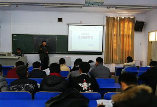 2017年12月20日15:00,环境工程系在北教209教室举办本学期第三场毕业生校园招聘会,河南名科检测技术有限公司到校招聘,环境工程系151301、151321、151291班30多名学生参加招聘会。