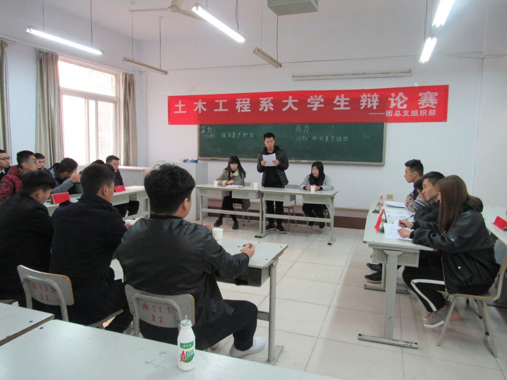 为提升学生思辨能力和创造力,激发学生自主思考的能力2017年12月8日12:00,土木工程系开展诚信明理,青春同行主题辩论赛