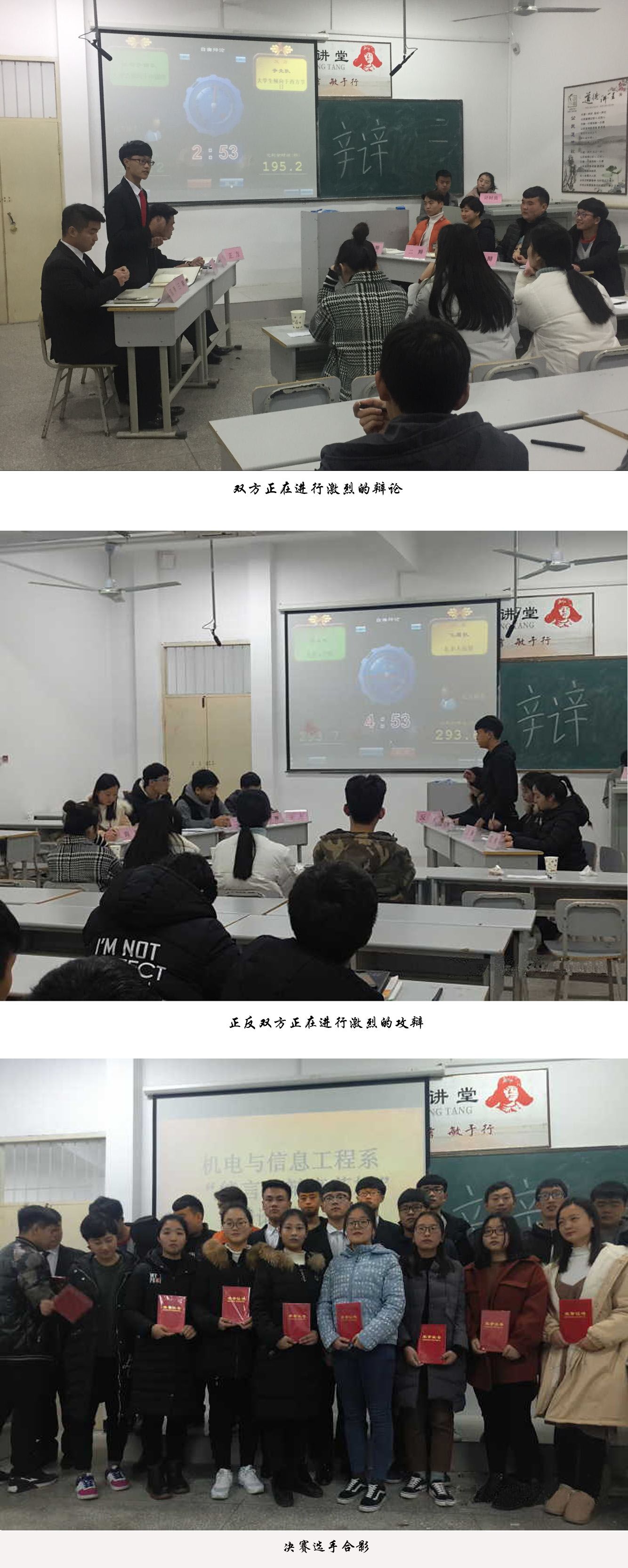 2017年12月20日,机电与信息工程系在综合楼408教室举办了“能言善辩真英雄”辩论赛决赛。