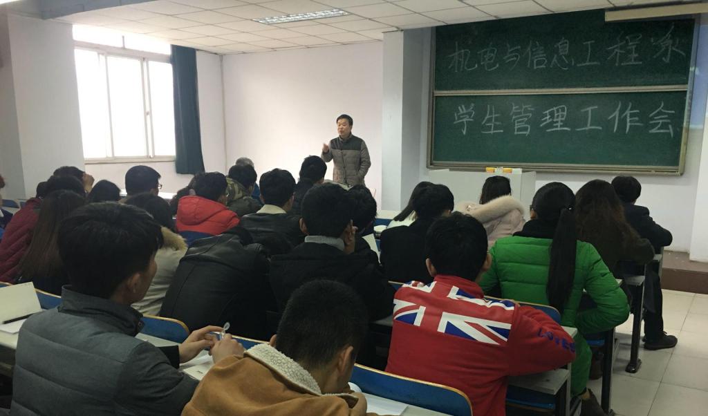 2018年3月6日,机电与信息工程系在南教405教室召开新学期学生管理工作会议,系党支部书记武凤翔、副主任岳学超、全体学管师和团学干部参加会议