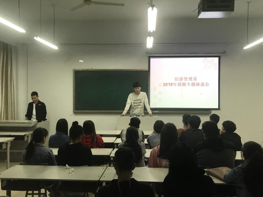 2018年3月29日,经济管理系在南教101教室以如何让晨跑更有意义为主题召开了学生座谈会,系学生会有关干部和各班学生代表参加会议。