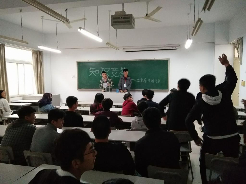 为进一步丰富学生课余生活,增加学生的团队精神,土木工程系于2018年4月9日举办了以“知识,快乐,默契,团结”为主题的知识竞答活动。