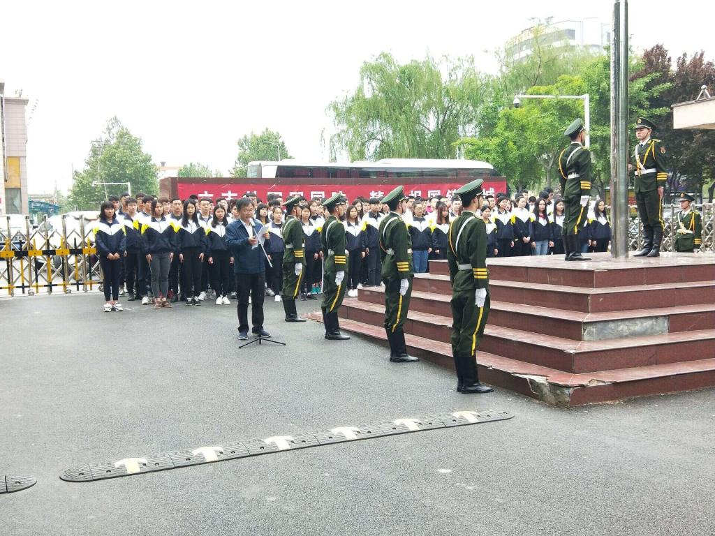 2018年4月23日,机电与信息工程系以传承五四精神,弘扬革命传统为主题举行升国旗仪式,系全体学管老师和在校生参加仪式。