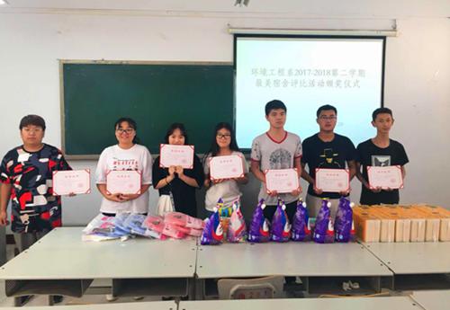 为促使学生养成良好的生活习惯,创建安全、舒适、温馨的学习生活环境,3月12日-5月30日,环境工程系开展文明宿舍评比活动。活动依据《环境工程系大学生宿舍文明公约》对学生宿舍进行了连续综合检查评比,最终评选出7个优秀文明宿舍,并于531日下文明宿舍颁发了奖状和奖品。