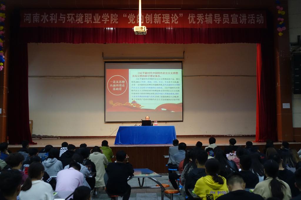 为深入学习贯彻习近平新时代中国特色社会主义思想和党的十九大精神,推动党的创新理论成果进教材、进课堂、进师生头脑,2018年10月23日晚,土木工程系在学院大礼堂举办了“党的创新理论”优秀辅导员宣讲活动,辅导员邵琳面向全系18级学生进行了宣讲报告。