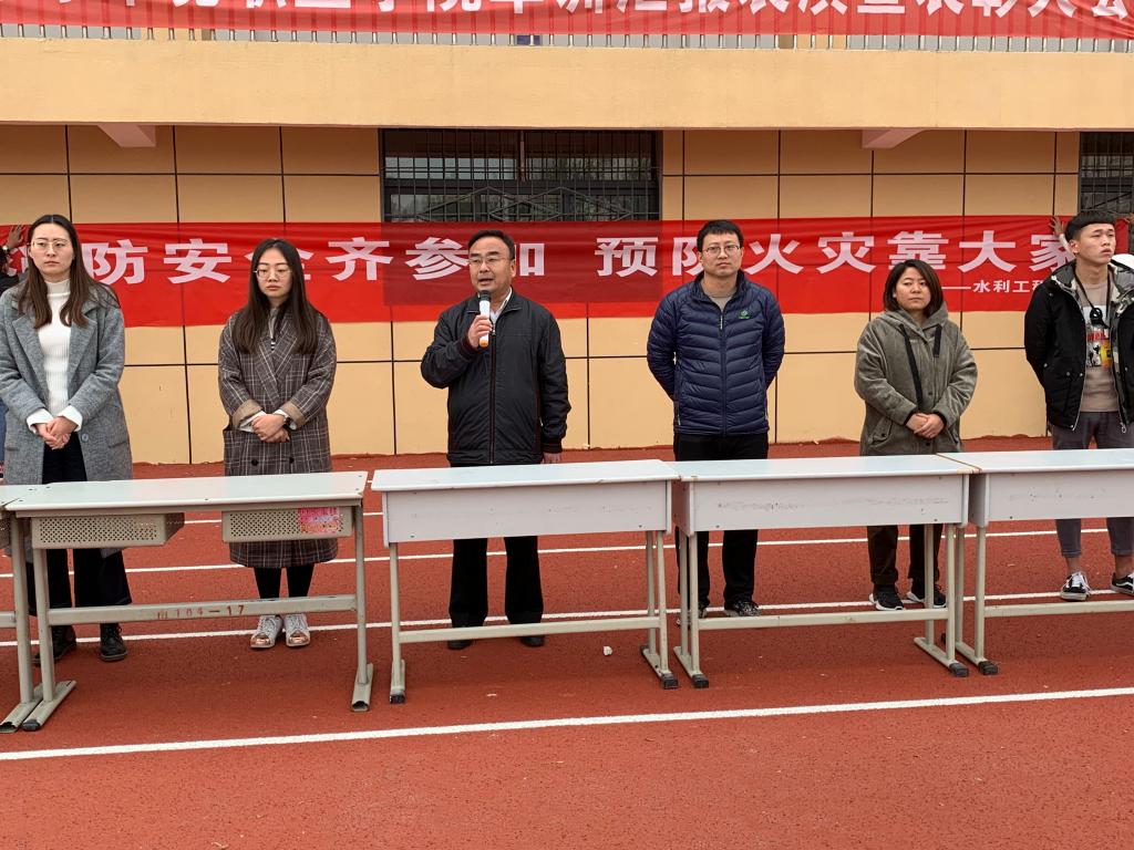 2018年11月13日下午,水利工程系在运动场举行了“消防安全齐参加,预防火灾靠大家”消防安全签字活动。系党总支书记李文林,全体学管老师及400余名学生参加活动。