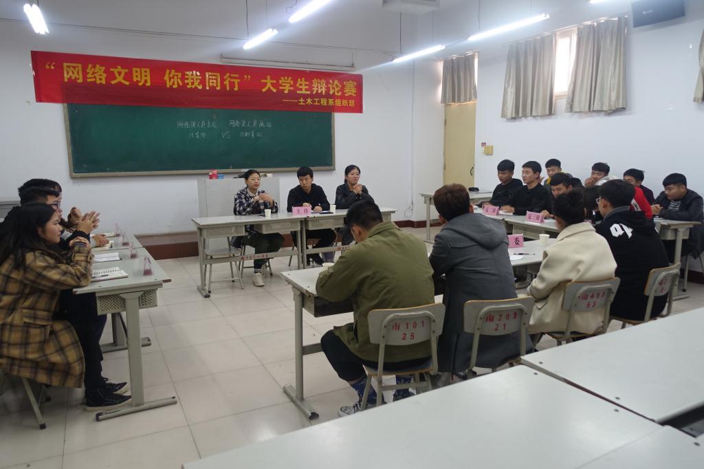 为引导大学生遵守网络行为规范,倡导文明健康的网络生活方式,促进青年健康成长,利用网络传承历史、服务社会。土木工程系11月13日~30日举办了“网络文明,你我同行”辩论赛。