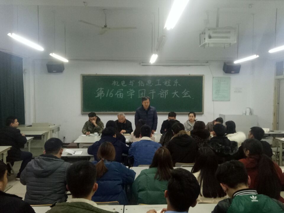 2018年12月19日,机电与信息工程系在南教402教室召开了第16届学团干部大会,系党总支书记武凤翔、副主任岳学超、学管老师和全体学团干部50余人参加。