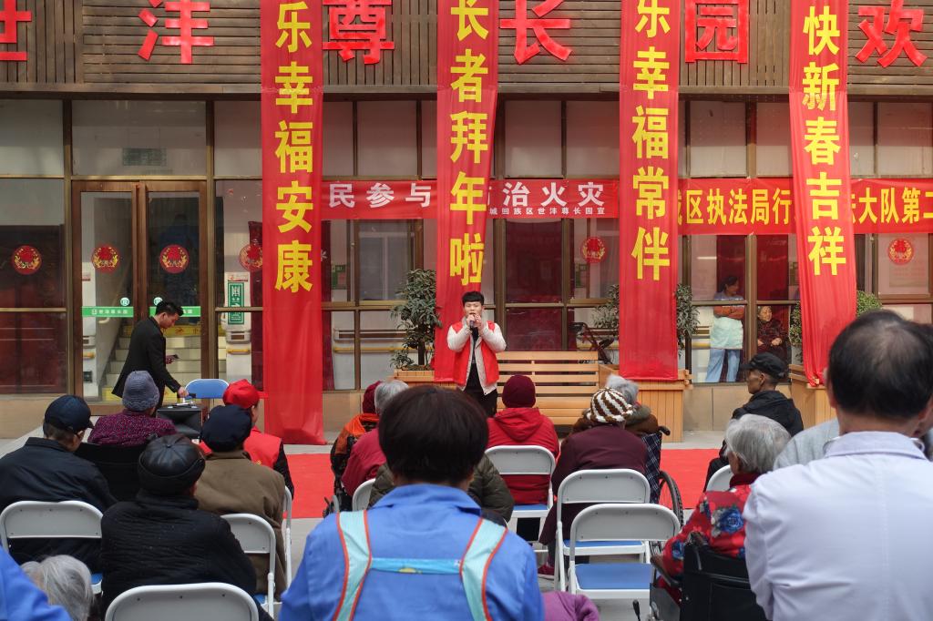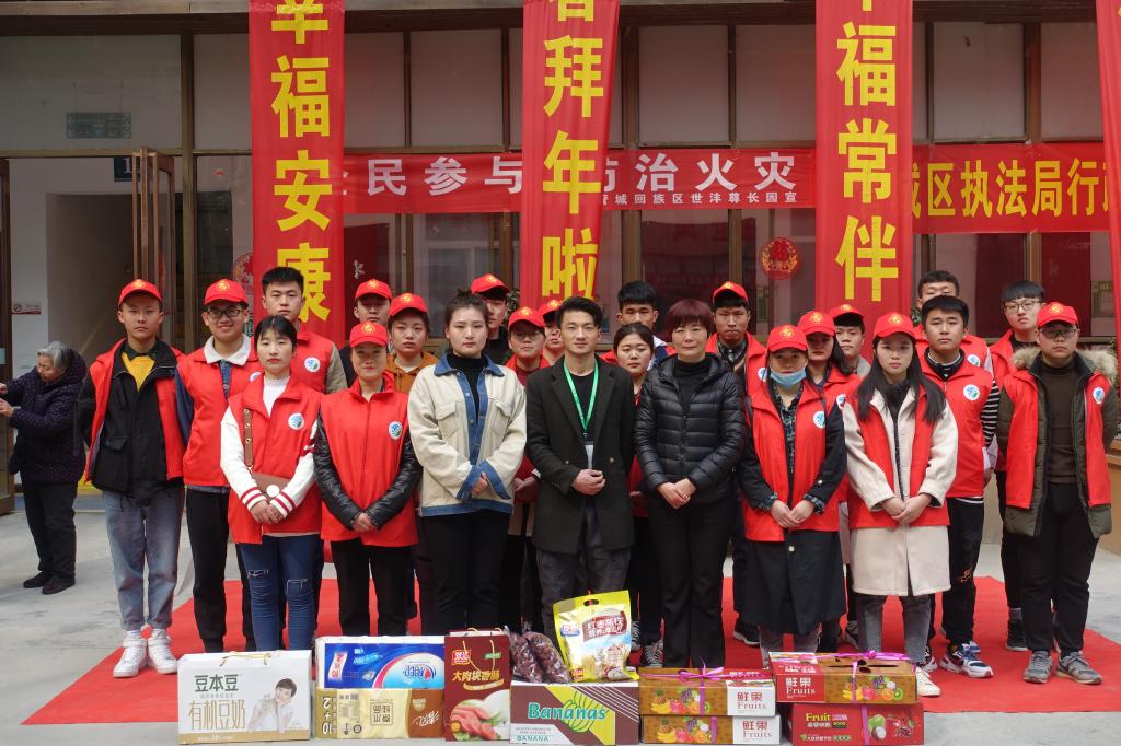 志愿者们为老人们送去了生活用品和营养品,帮助老人打扫院子,与他们亲切交谈,为他们锤背,并给老人们表演了节目,使老人们笑声连连。