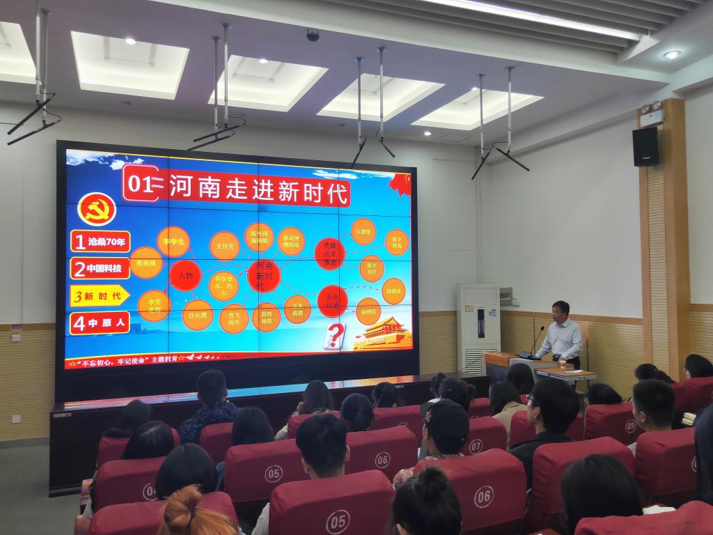 10月8日晚,机电与信息工程系在北教三阶开展党课培训。系党总支书记武凤翔以“科技新时代,中原更出彩”为主题,为全系辅导员、入党积极分子和团学干部上了一节生动的党课。