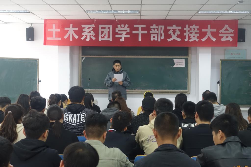 10月31日晚,土木工程系在南教304教室召开了团学干部换届竞选大会,于11月4日召开了学生干部交接大会。系党总支书记文琳,副主任钟含,全体学管老师、辅导员、团学干部及各班团支书、班长参加大会。