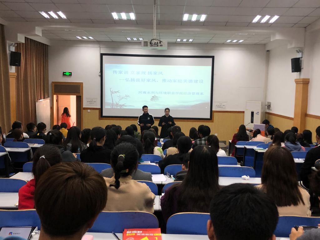 11月7日,经济管理系以“家庭美德”为主题举办道德讲堂活动。全系学管老师,2019级会电一班和物流二班全体同学参加活动。