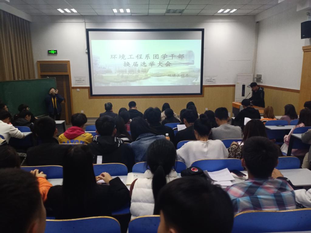 11月13日下午,环境工程系召开第七届团学干部换届选举大会。系党总支书记郭海山,全体学管老师、辅导员及100余名参选同学参加大会。