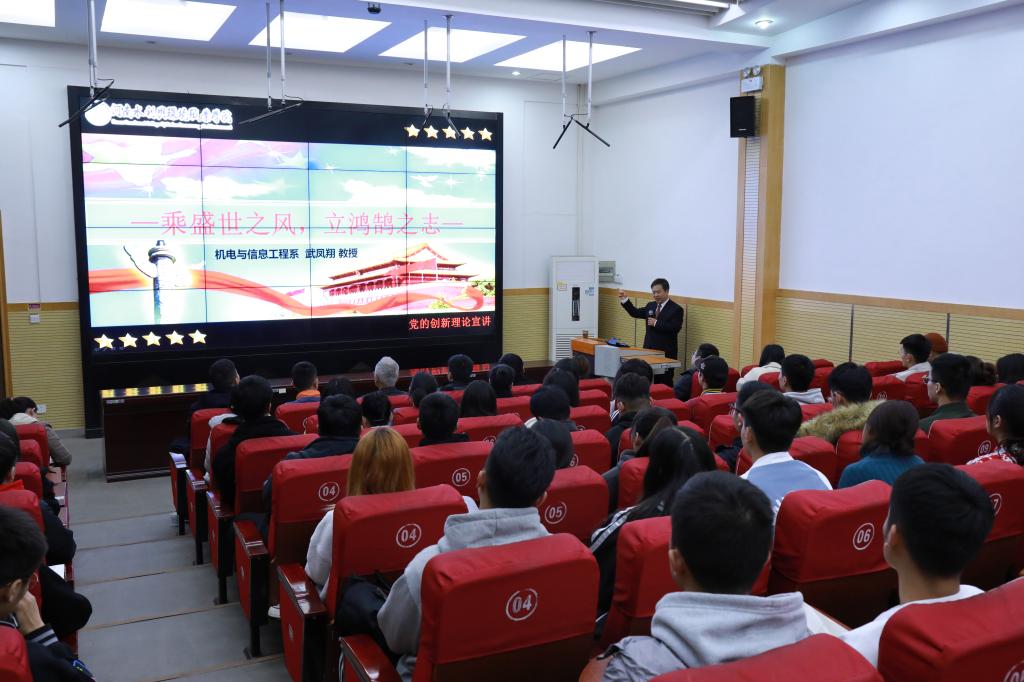 11月21日晚,机电与信息工程系在北教三阶以“乘盛世之风,立鸿鹄之志”为主题开展党课培训。系全体辅导员老师和入党积极分子参加培训。