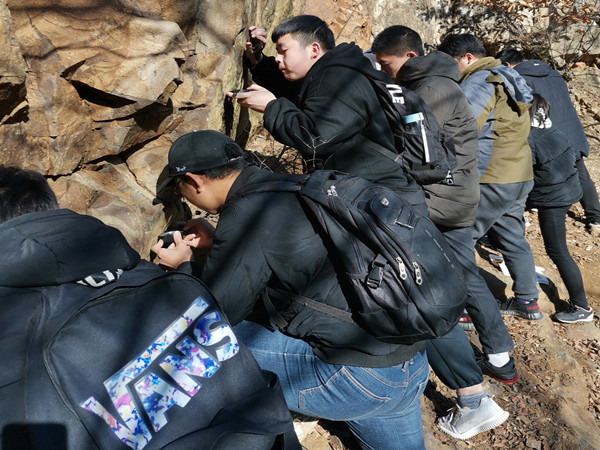 地质实习地点为素有世界地质公园之称的嵩山,通过到逍遥沟、太子沟、中岳庙后沟及玉皇庙等典型地质地貌现象地,同学们认识了三大类岩石及褶皱断裂等构造,并现场操作了地质罗盘仪。