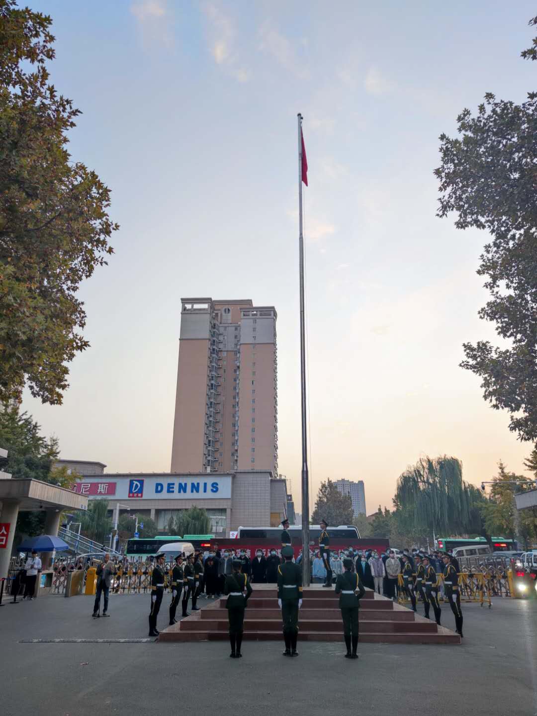 11月9日,信息工程系举行“消防安全”主题升国旗仪式,发展规划与教学督导处处长岳学超、全体学管、辅导员及系2019级在校生参加升旗仪式。
