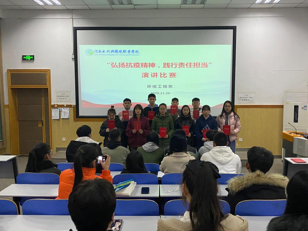11月26日,环境工程系在北教一阶教室举办“弘扬抗疫精神 践行责任担当”演讲比赛。
