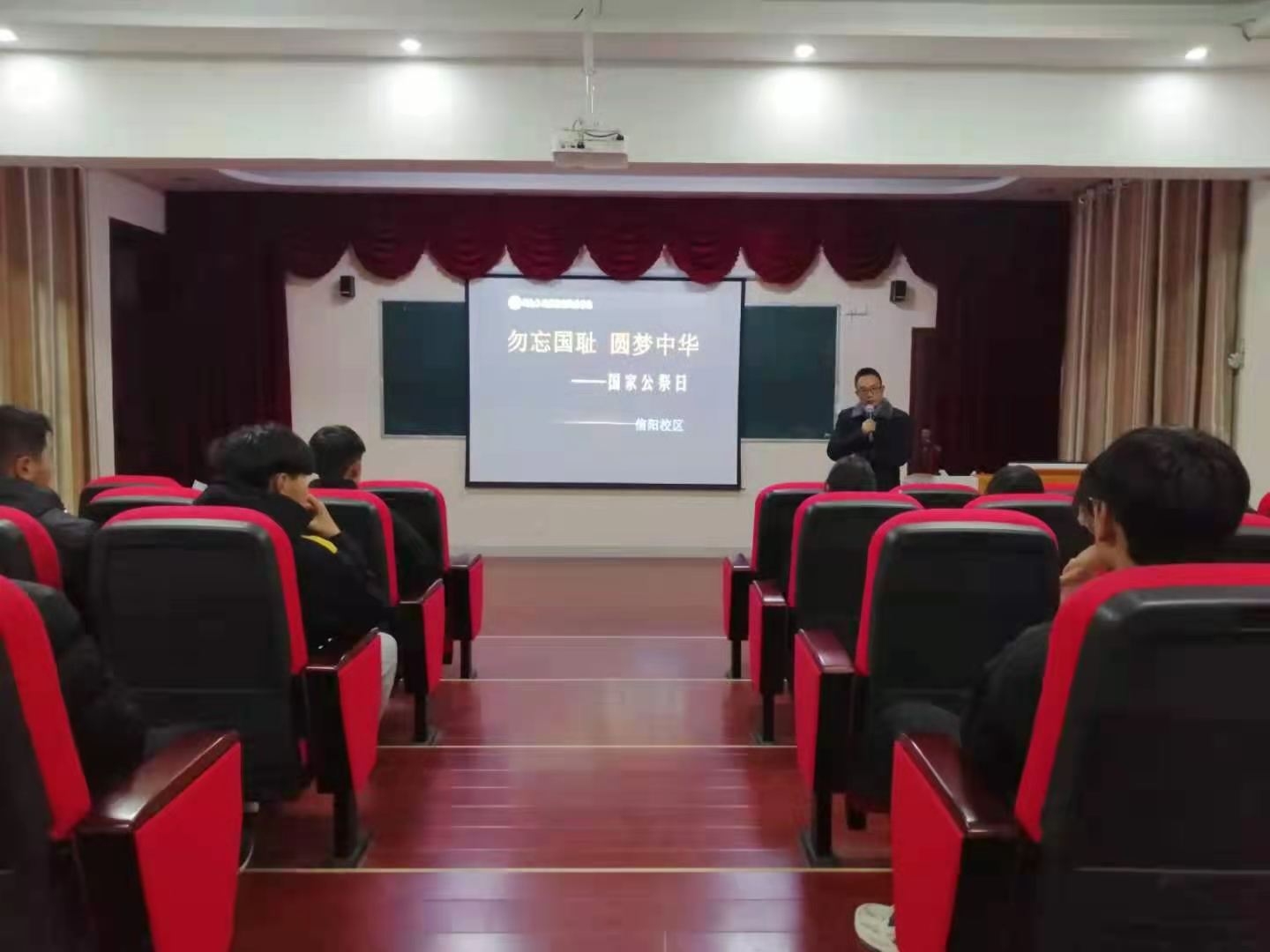 为了缅怀罹难同胞、铭记历史,进一步深化爱国主义教育,12月13日信阳校区开展“勿忘国耻 圆梦中华”主题党课培训。培训由校区管委会副主任张广文主讲,部分教师和学生代表参加。