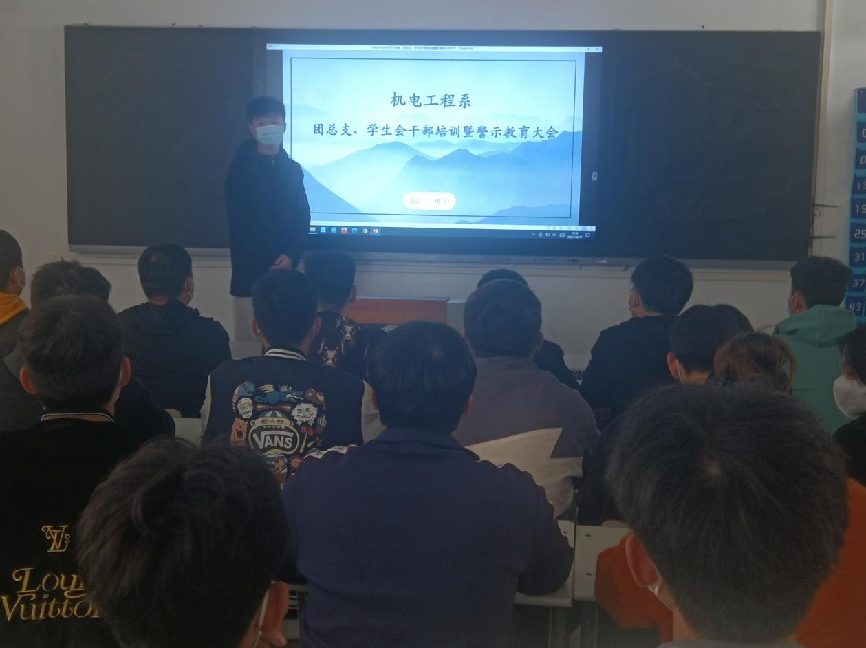10月19日,机电工程系召开团总支、学生会干部培训及警示教育大会,45名团学干部参加。
