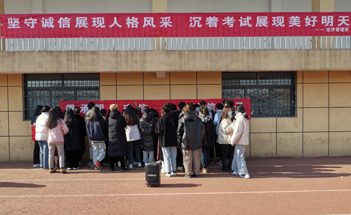12月21日中午,经济管理系在操场举办诚信考试签名活动。系党总支书记钟含,系2019级和2020级在校学生参加本次活动。